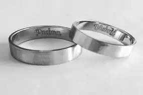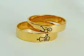Engraving on gold jewellery is new trend and we are very good at making custom engraved jewellery in india . We offer different kind of options to engrave on gold ring for wedding/engagment like fingerprint engraving,name engraving and your voice wave form engraving.